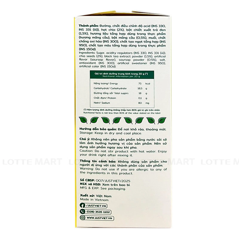 Trà Trái Cây Hòa Tan Just Viet Mãng Cầu Hạt Chia Hộp 10 Gói x 20G