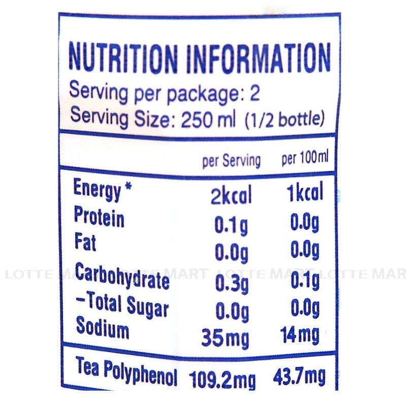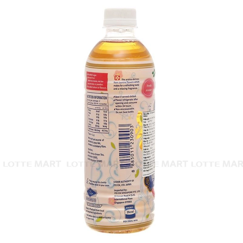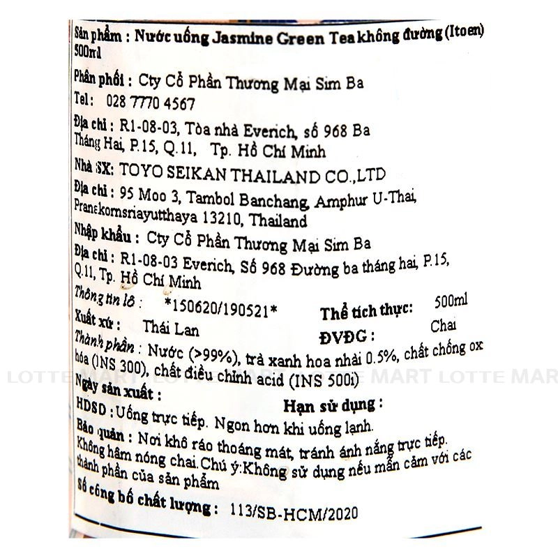 - Nước (>99%), trà xanh hoa nhài 0.5%, chất chống oxy hóa (INS 300), chất điều chỉnh acid (INS 500i).