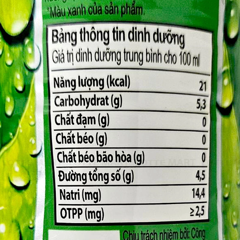 - Nước, đường, trà ô long, hương giống tự nhiên, chất chống oxy hóa, OTPP
