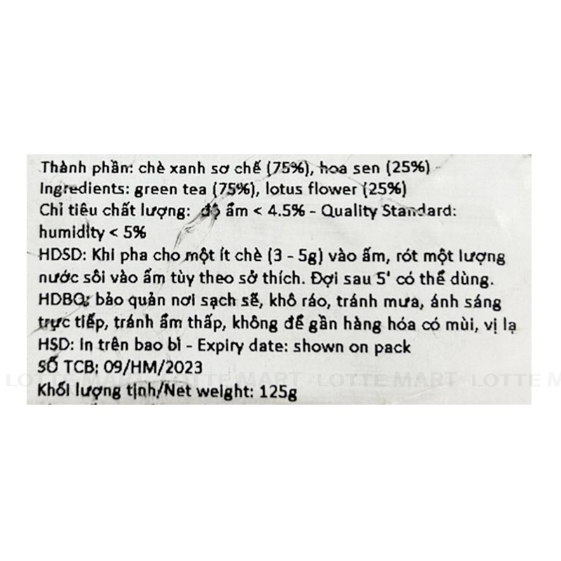 - Chè xanh sơ chế (75%), hoa sen (25%).