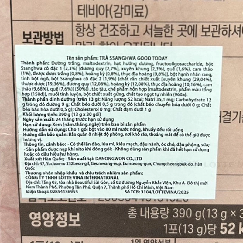 Trà Ssanghwa Hòa Tan Good Today là một thức uống truyền thống đậm đà và bổ dưỡng.
