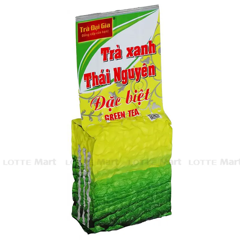 Trà Xanh Thái Nguyên Đặc Biệt Trà Đại Gia được đóng trong túi tráng nhôm hút chân không đảm bảo kín nên giữ nguyên được hương vị. Cây chè nguyên liệu được trồng trên đất chè Thái Nguyên có điều kiện thổ nhưỡng và khí hậu đặc biệt phù hợp nên cho phẩm chất rất tốt.