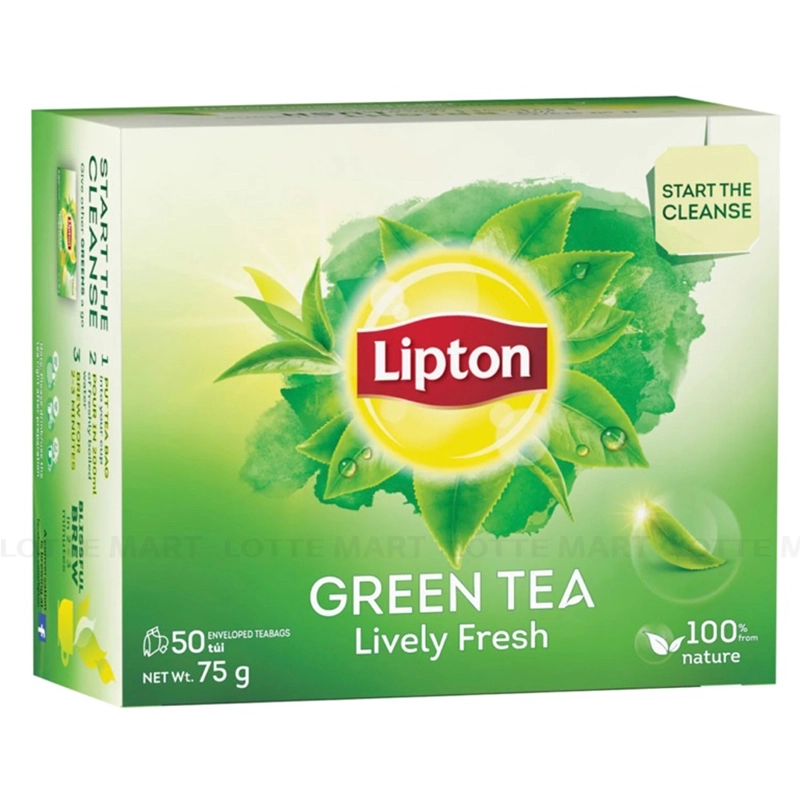 - Trà Xanh Túi Lọc Lipton Tươi Mới Hộp 50 Gói 1.5G là dòng sản phẩm trà xanh mới với sự kết hợp tinh túy của chất Flavonoid có trong trà xanh và sự tươi non, thanh khiết của búp trà.
