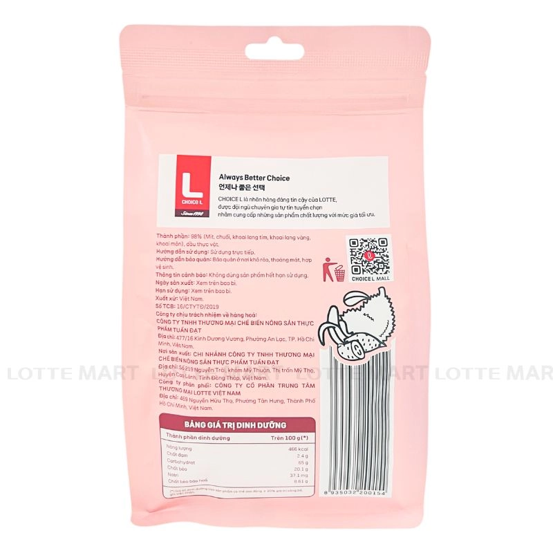 Trái Cây Sấy Tổng Hợp Choice L được chế biến từ những nguyên liệu tươi ngon với công nghệ sản xuất hiện đại vẫn giữ nguyên màu sắc và mùi vị đặc trưng của các loại trái cây. Sản phẩm có hương vị thơm ngon, hấp dẫn màu sắc tươi ngon sẽ dễ dàng đánh thức vị giác của bất kì ai.