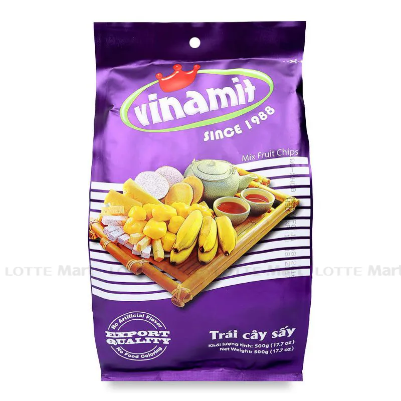Trái cây sấy Vinamit là một trong những loại thực phẩm sấy khô đựợc rất nhiều người tiêu dùng yêu thích. Các loại trái cây như mít, chuối, khoai lang, khoai môn được chọn lọc và được xử lý qua các công nghệ sấy gia nhiệt và sấy khô của Vinamit sẽ giúp cho sản phẩm vẫn giữ được màu sắc và hương vị nguyên chất.