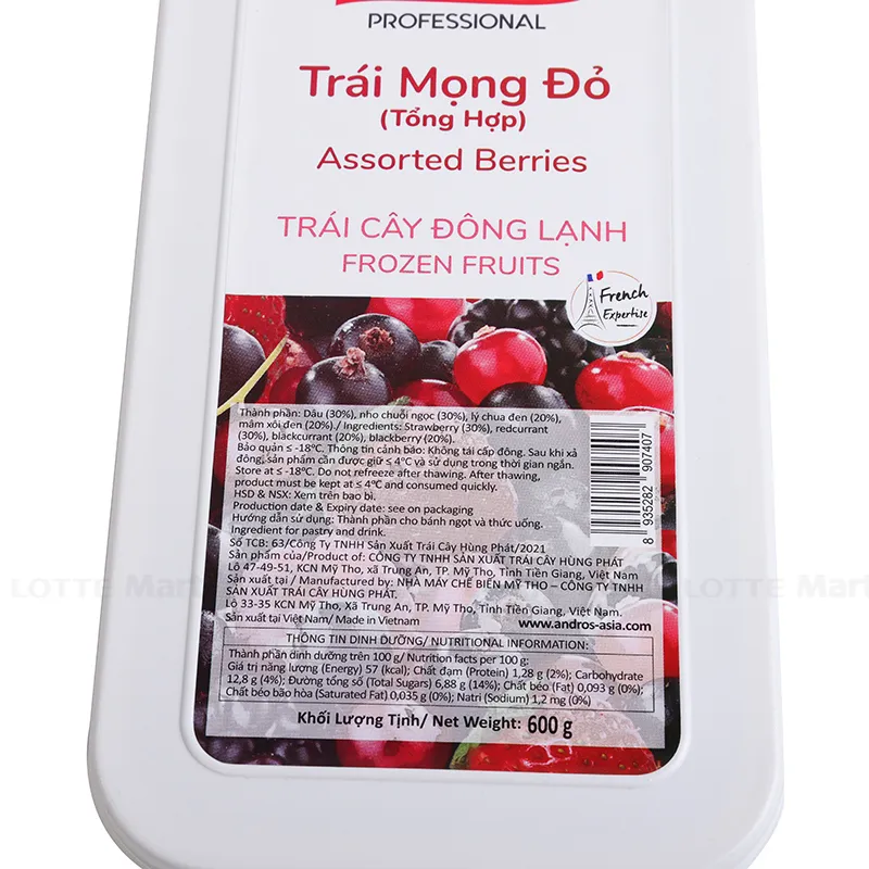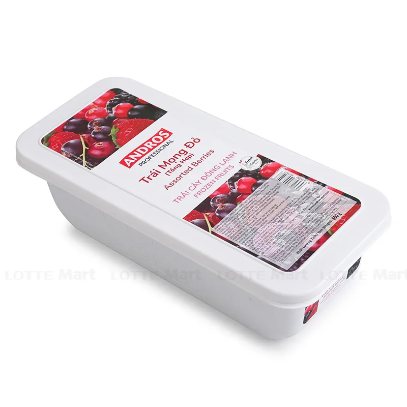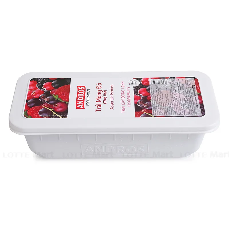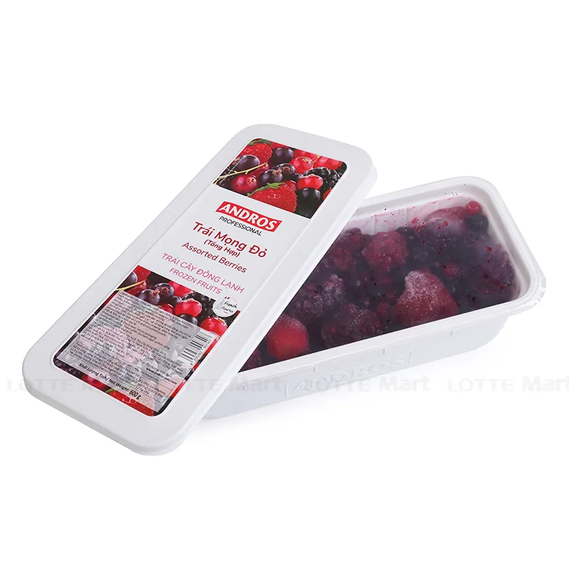 - Trái Mọng Đỏ Tổng Hợp Đông Lạnh Andros 600g được sản xuất với dây chuyền cấp đông siêu tốc (IQF) 100% làm từ trái cây tự nhiên và được lựa chọn kỹ lưỡng, được đóng gói tiện lợi để phục vụ mọi nhu cầu sử dụng suốt cả năm.
