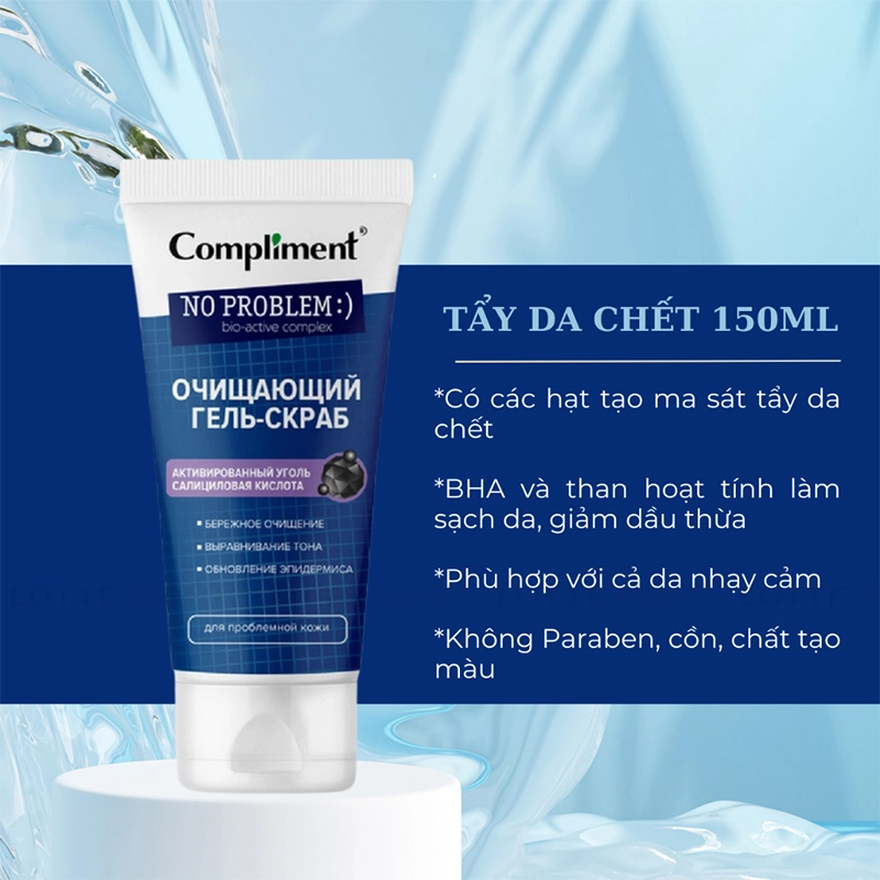 Tẩy Da Chết Dạng Hạt Compliment No Problem Cleansing Gel Scrub là sản phẩm thuộc thương hiệu Compliment của Tập đoàn TIMEX - một trong những doanh nghiệp sản xuất mỹ phẩm lớn và nổi tiếng nhất nước Nga được thành lập từ năm 1994.