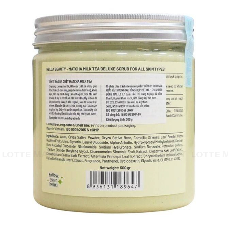 Tẩy Tế Bào Chết Hella Beauty Hương Trà Sữa Trà Xanh Hũ 500G