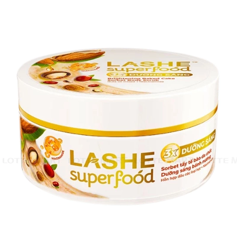 Tẩy Tế Bào Chết Cơ Thể Lashe Sáng Da Hạt Thiên Nhiên Hương Bánh Nướng với các hạt tẩy tế bào chết mịn như tuyết giúp loại bỏ lớp da sần sùi một cách nhẹ nhàng.
