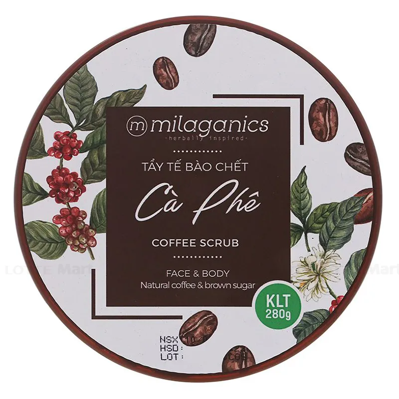 Tẩy Tế Bào Chết Milaganics Cà Phê Sáng Da Mờ Thâm là tẩy tế bào chết da mặt và toàn thân đến từ thương hiệu mỹ phẩm Milaganics của Việt Nam, giàu thành phần từ tự nhiên như hạt cà phê Robusta, đường nâu, dầu Oilve, Cám Gạo, Mật Ong,… dễ dàng lấy đi tế bào chết, lớp sừng trên da mà vẫn cung cấp đủ độ ẩm đồng thời làm giảm các vết thâm sạm, nuôi dưỡng da mềm mại, sáng mịn.