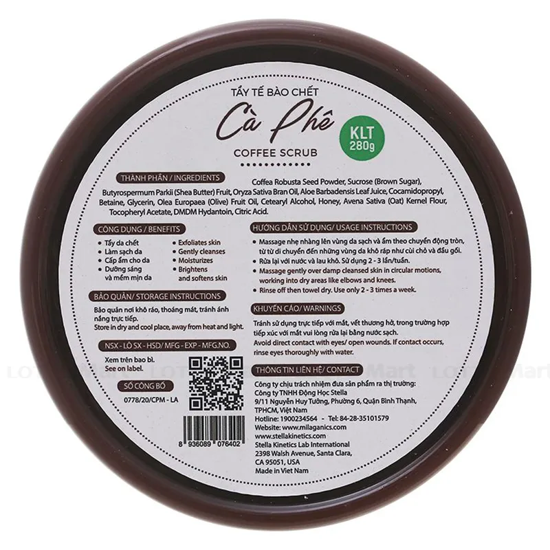 Tẩy Tế Bào Chết Milaganics Cà Phê Sáng Da Mờ Thâm Hộp 280g