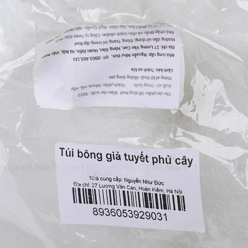 Túi Bông Trắng Giả Tuyết Phủ Cây Thông Trang Trí Noel được làm từ chất liệu bông cao cấp, mềm, xốp, trắng tinh dùng để phủ lên cây thông Noel nhằm mang đến một diện mạo mới hấp dẫn hơn, đặc sắc và bắt mắt hơn cho cây thông Noel của bạn. Sản phẩm được sản xuất với chất liệu an toàn, không chứa chất độc hại, cùng với công nghệ sản xuất hiện đại giúp bạn yên tâm về chất lượng cũng như độ an toàn đối với sức khỏe khi sử dụng. Thông số: Sản phẩm không dùng pin. Lưu ý: Không để sản phẩm tiếp xúc trực tiếp với lửa. Độ tuổi phù hợp: Sản phẩm thích hợp cho người lớn và cả trẻ em trên 3 tuổi. Hướng dẫn sử dụng: Dùng để trang trí trong ngày Giáng Sinh. Hướng dẫn bảo quản: Bảo quản nơi khô ráo thoáng mát, tránh ánh nắng trực tiếp. Xuất xứ: Việt Nam.