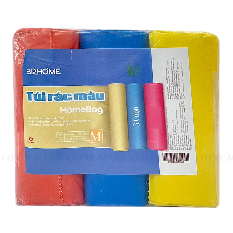 Lốc 3 Cuộn Túi Rác Màu Homebag Size M 55x65cm 1kg