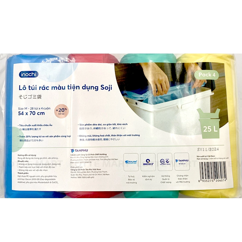 - Túi Rác Màu Tự Hủy Inochi Có Quai Xách Size M là giải pháp thân thiện với môi trường, giúp bạn dễ dàng thu gom và xử lý rác thải một cách hiệu quả. Với thiết kế tiện lợi và chất liệu tự hủy, sản phẩm này không chỉ mang lại sự tiện dụng mà còn bảo vệ môi trường.