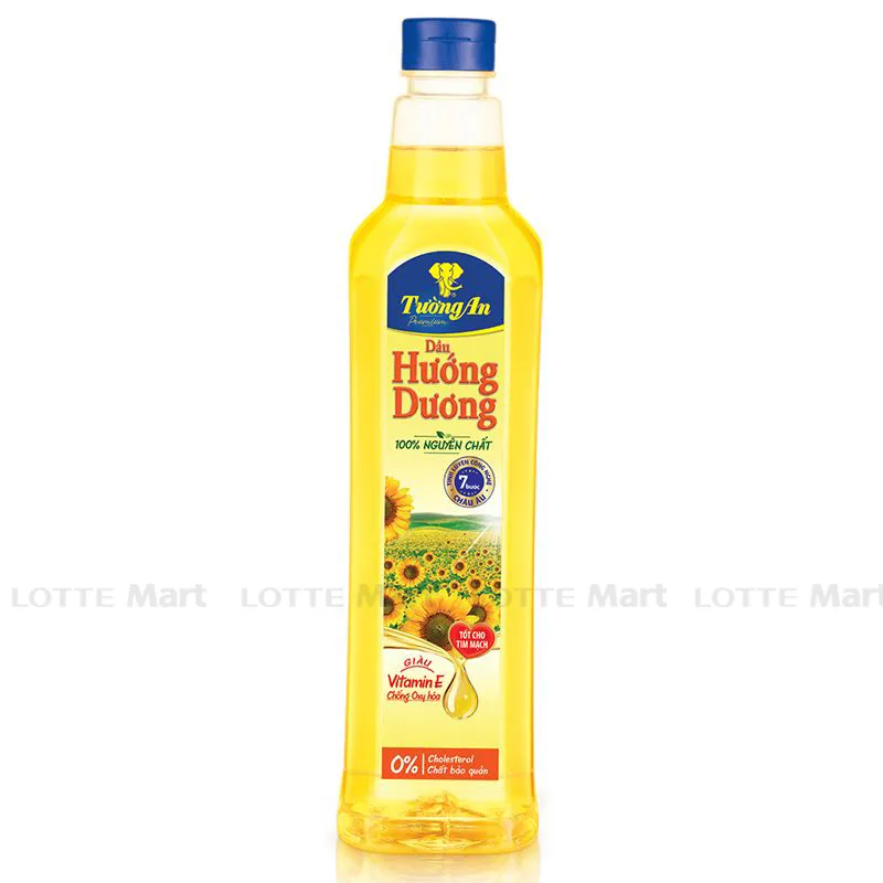 Dầu Hướng Dương Tường An với nguyên liệu nhập khẩu 100%. Thành phần 100% dầu hướng dương nguyên chất tinh luyện. Sản phẩm đột phá với 07 bước tinh luyện theo công nghệ Châu Âu cho chất lượng vượt trội và tốt cho sức khỏe như: loại bỏ tạp chất có hại cho sức khỏe, chất lượng dầu tinh khiết tuyệt đối, lưu giữ tối ưu dưỡng chất (Vitamin E, Omega 3-6-9). Thích hợp chế biến các món chiên, rán ở nhiệt độ cao kéo dài. Bảo quản: Nơi khô ráo, thoáng mát, tránh ánh nắng trực tiếp. Xuất xứ: Việt Nam.