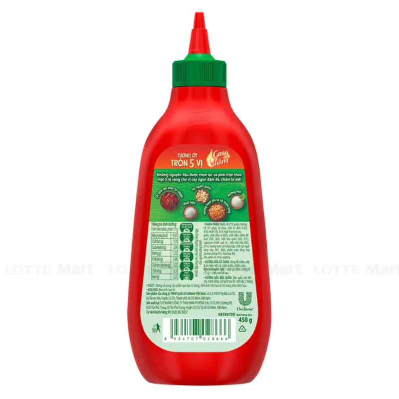 - Tương Ớt Knorr Tròn 5 Vị Cay Đậm với từng giọt tương ớt Knorr được tạo nên từ những nguyên liệu chọc lọc: Ớt tươi lên men tự nhiên, tỏi ngâm giấm, hành phi thơm lừng hài hòa cùng gia vị muối biển và đường mía hoà quyện trong công thức tỷ lệ vàng độc đáo cho vị cay ngon tròn vị.
