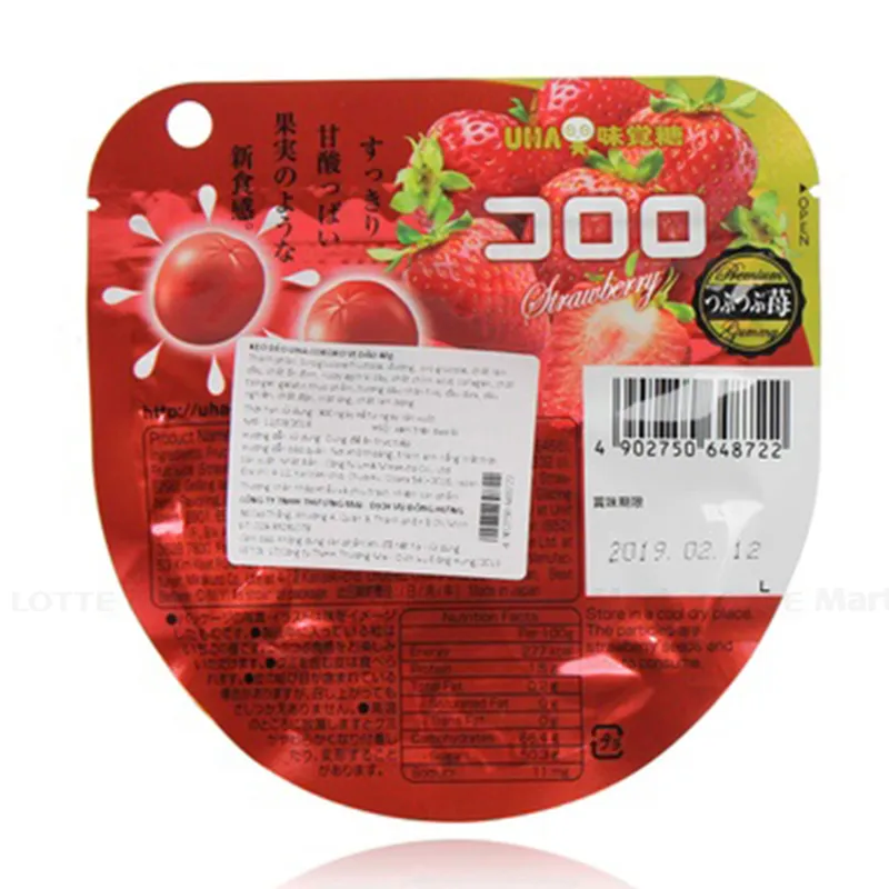 - Kẹo Dẻo UHAvới hương vị thơm ngon, thơm ngon, hấp dẫn vị giác giúp người tiêu dùng có thể trải nghiệm nhiều hương vị khác nhau. Kẹo dẻo đến từ thương hiệu kẹo UHA, được sản xuất trên dây chuyền công nghệ hiện đại và an toàn của Nhật Bản, không thêm chất bảo quản hay phụ gia độc hại.