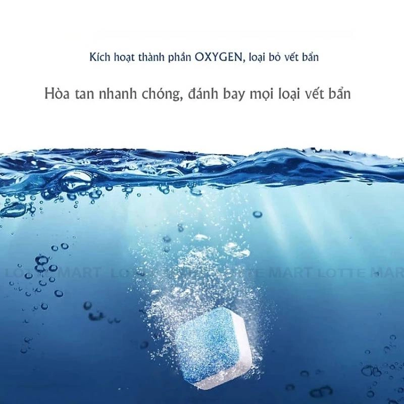 - Viên tẩy sử dụng chất oxy phân tử có hiệu quả diệt khuẩn khử mùi hôi, làm sạch cặn bẩn lâu ngày, mảng bám, bã nhờn và các chất bẩn khác trên quần áo và lồng giặt, giúp lồng giặt sạch sẽ.