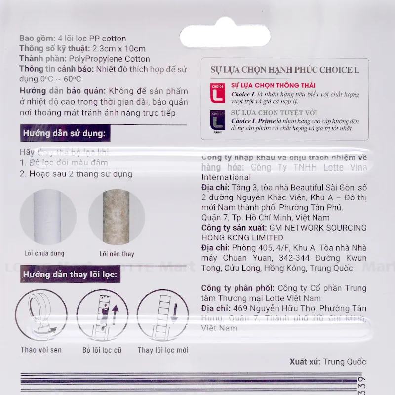 Vỉ 4 Lõi Lọc Thay Thế Cho Vòi Sen Choice L