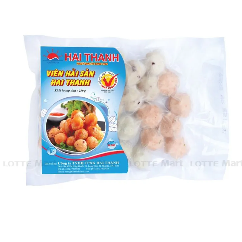 Viên Hải Sản Hai Thanh 250G được sản xuất trên dây chuyền hiện đại theo công thức đặc biệt, mang đến hương vị thơm ngon và an toàn cho sức khỏe khi thưởng thức.Được làm từ các nguyên liệu tươi , ko chất tạo dai.