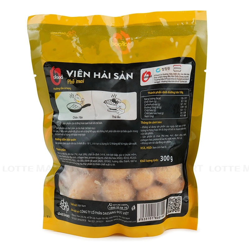 - Viên Hải Sản Phô Mai Đức Việt Gói 300G được làm từ những loại hải sản chất lượng, sản phẩm này không chỉ mang đến sự đa dạng về hương vị mà còn giữ nguyên các dưỡng chất thiết yếu. Các viên hải sản được chế biến tỉ mỉ để đảm bảo sự tươi mới và ngon miệng, kết hợp hoàn hảo với phô mai tan chảy, giúp tăng cường độ ngậy và béo ngậy của món ăn.