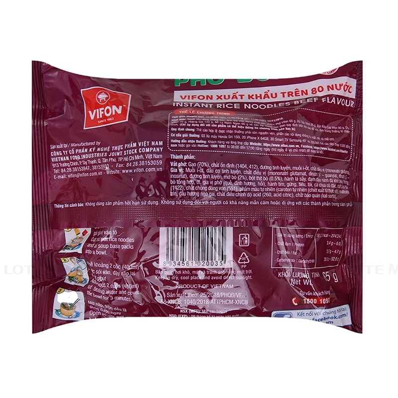 - Phở Bò Vifon Lốc 5 Gói 65G có hương vị thơm ngon của nguyên liệu tự nhiên, khi nấu chín sợi phở trở nên dai, kích thích vị giác, phù hợp khẩu vị của đa số người tiêu dùng.