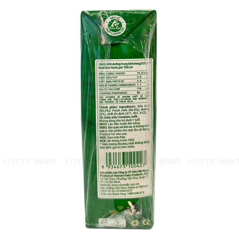 Thành phần: Sữa tươi, đường... Hàm lượng dinh dưỡng có trong 100ml sữa tươi Vinamilk Green Farm ít đường gồm: 110mg Canxi; 68,9 kcal Năng lượng; 3,0gram Chất đạm; 3,3gram Chất béo; 6,8gram Cacbon Hydrat và 80mg Phospho. Đảm bảo cung cấp đầy đủ dinh dưỡng và năng lượng để bạn tiếp tục học tập, hoạt động, làm việc.