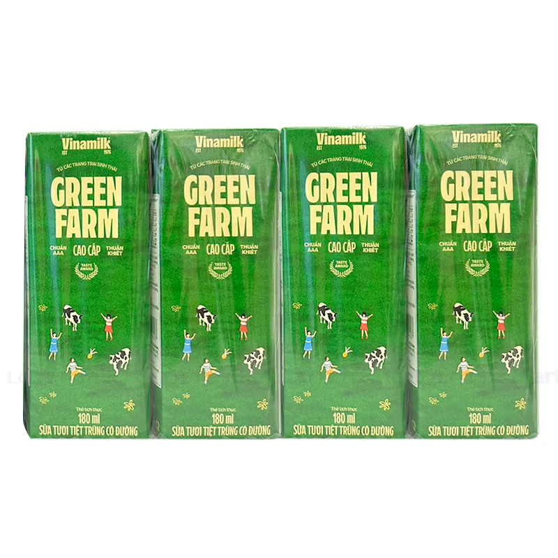 Sữa Tươi Tiệt Trùng Vinamilk Green Farm Có Đường Lốc 4 Hộp 180ml