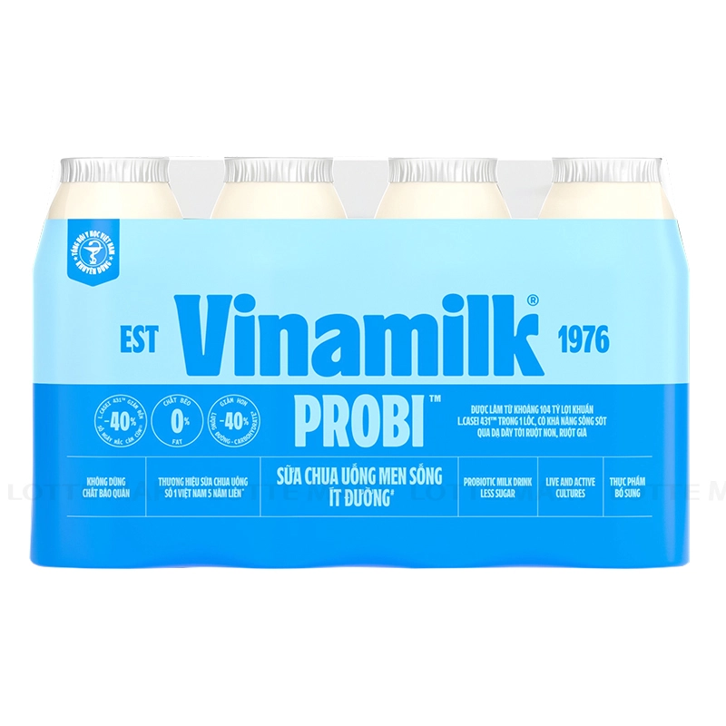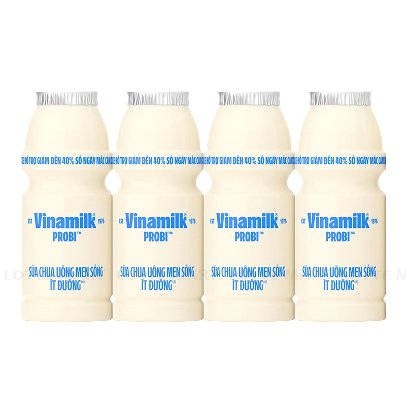 Lốc 4 Chai Sữa Chua Uống Vinamilk Probi Ít Đường 130ml
