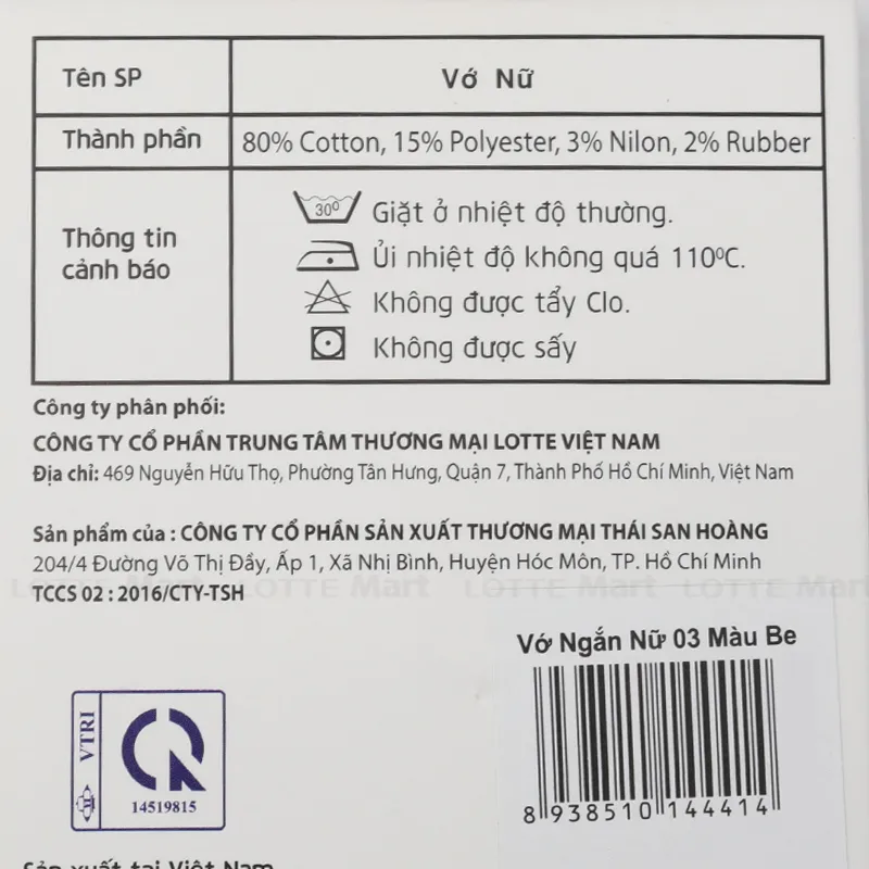 - Chất liệu: 80% Cotton, 15% polyester, 3% nilon, 2% rubber.