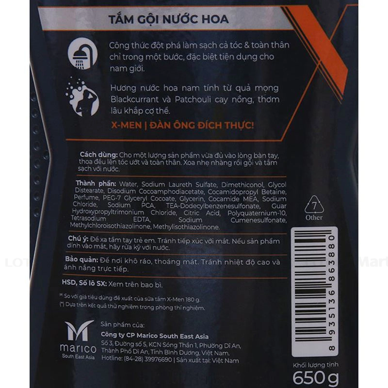 Dầu Tắm Gội Nước Hoa X-Men Fire Active Chai 650G
