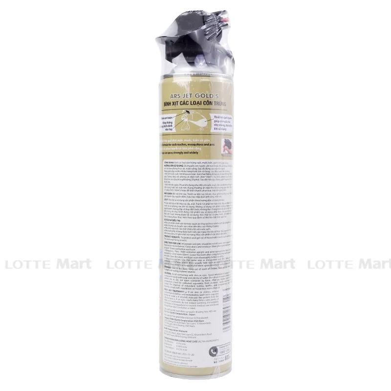 Xịt Côn Trùng ARS Jet Gold Chai 600ml mang lại hiệu quả cao và tức thì với cả côn trùng bay và không bay như muỗi, gián, kiến... nhờ thành phần hoạt chất đặc dụng, giúp tiêu diệt cực nhanh các loại côn trùng gây hại, hạn chế phát triển mầm bệnh do chúng gây nên, bảo đảm sức khỏe của mọi người. Sản phẩm được chứng nhận không gây hại sức khỏe, không gây khó chịu cho người dùng.