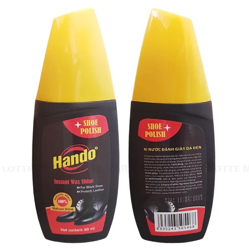 Xi Nước Đánh Giày Da Đen Hando là sản phẩm của thương hiệu Hando, giúp giày sáng bóng ngay lập tức, bảo vệ màu và chống thấm nước, chăm sóc và kéo dài tuổi thọ cho đôi giày, giúp cho chúng luôn bền đẹp như mới.