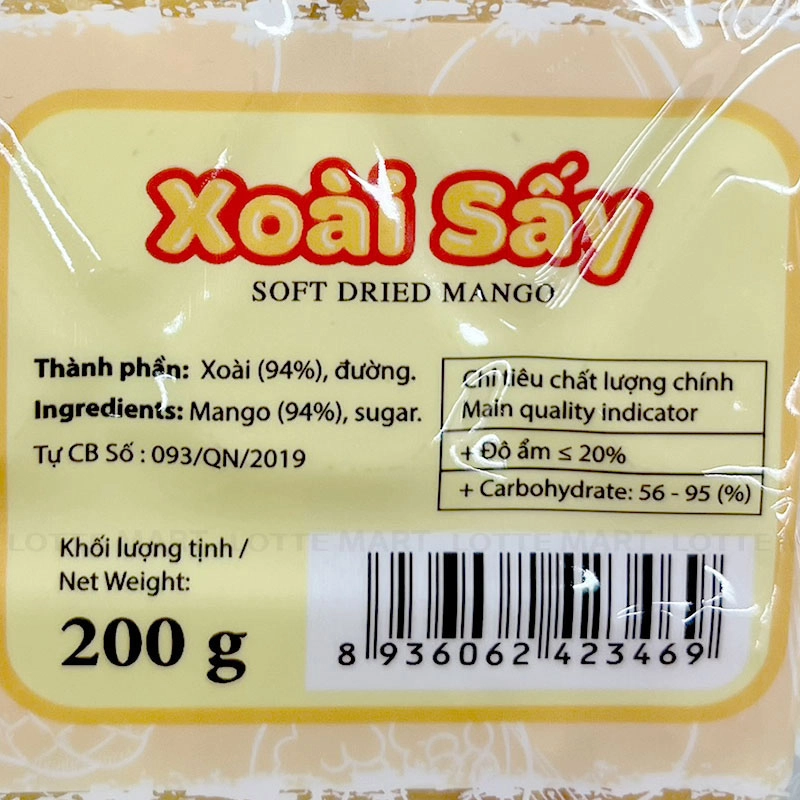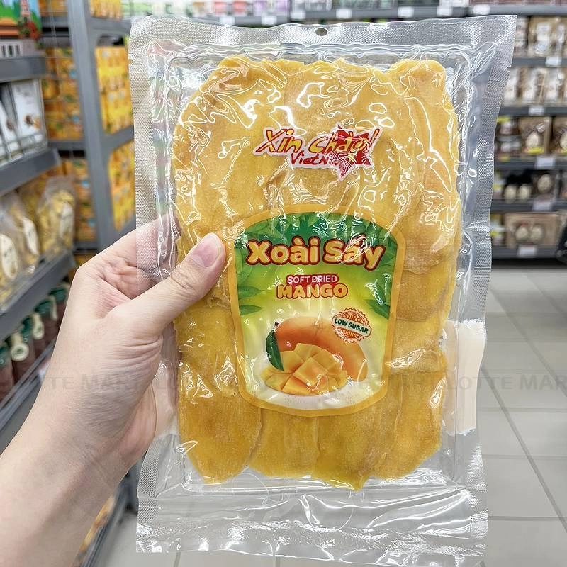 - Xoài Sấy Dẻo Xin Chào Việt Nam Loại 1 được làm từ 94% xoài tươi được sấy với độ dẻo vừa phải, mang hương vị ngọt ngào và thơm ngon, là món ăn vặt thích hợp cho mọi lúc.