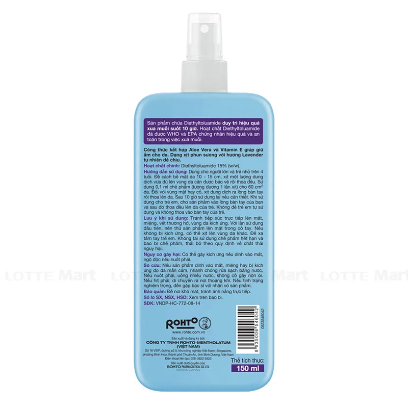 - Chứa 15% Diethyltoluamide có khả năng xua đuổi muỗi, côn trùng và hỗ trợ hạn chế các bệnh do côn trùng gây ra.