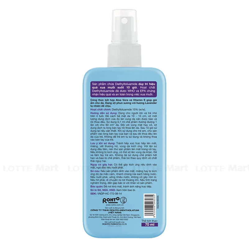- Xịt chống muỗi Remos Rohto hương lavender với thành phần Diethyltoluamide 15% giúp duy trì hiệu quả đuổi muỗi lên đến 10 tiếng.