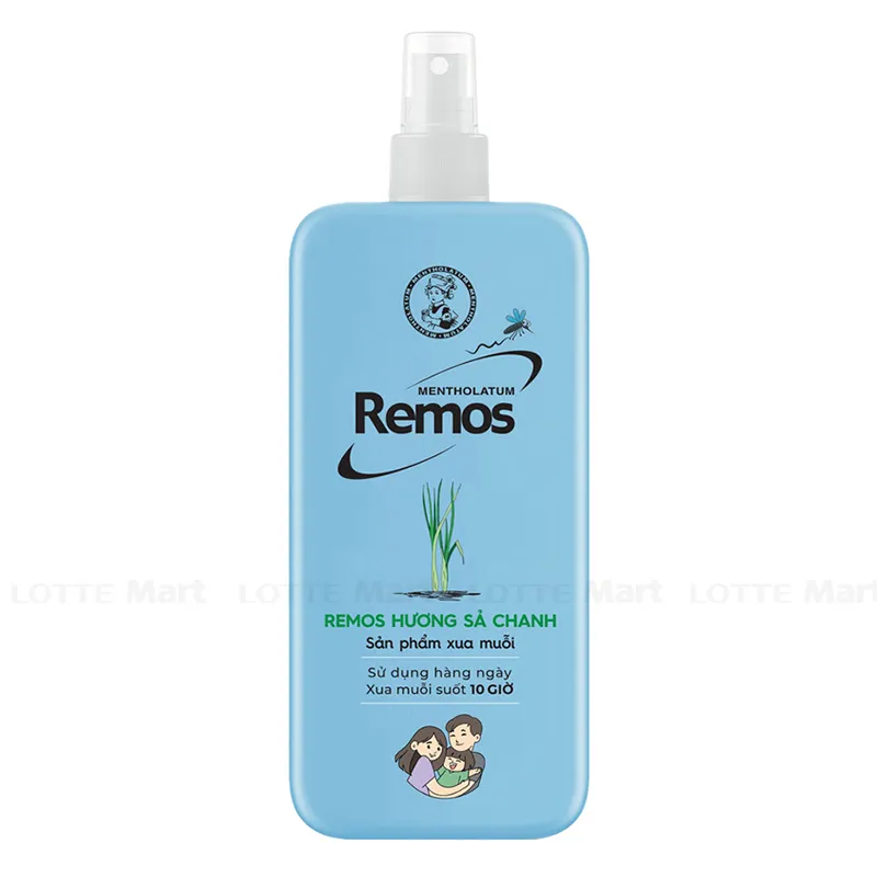 - Xịt Chống Muỗi Remos Hương Sả Chanh có dạng xịt tiện lợi, mang đến hiệu quả trong việc ngừa các bệnh do muỗi gây ra.