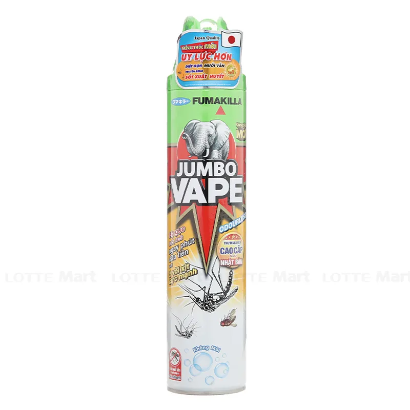 - Bình xịt muỗi Jumbo Vape FA giúp tiêu diệt các loại côn trùng gây hại để bảo vệ sức khỏe cho cả gia đình,đặc biệt là diệt muỗi vằn và các bệnh do virus ZIKA.