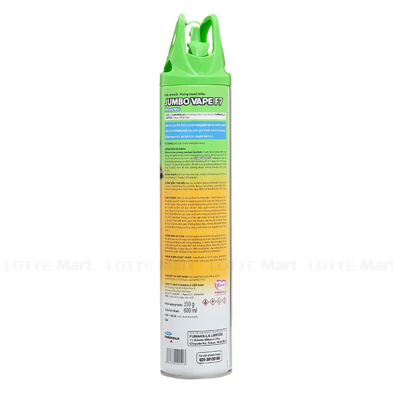 Xịt Muỗi Jumbo Vape F7 Không Mùi là dòng sản phẩm mới thuộc tập đoàn Fumakilla Limited của Nhật Bản, đây là nhà sản xuất và kinh doanh các dòng sản phẩm diệt côn trùng nổi tiếng, được tin dùng tại nhiều quốc gia. Jumbo Vape đã không còn quá xa lạ với người tiêu dùng Việt, khi là thương hiệu gắn liền với chiến dịch Chung Tay Phòng Chống Sốt Xuất Huyết, và cũng là nhãn hiệu diệt côn trùng dẫn đầu thị trường trong ngành hàng diệt côn trùng tại nước ta.