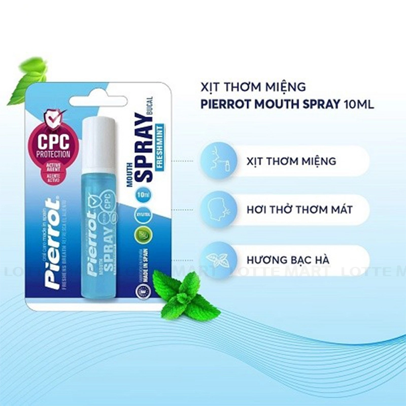 - Xịt thơm miệng Pierrot giúp hạn chế tình trạng hôi miệng, hiệu quả khử mùi, làm thơm miệng tức thì, cho hơi thở thơm mát để bạn tự tin trong giao tiếp.
