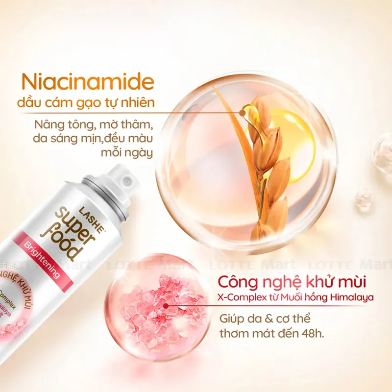 Xịt Khử Mùi LASHE Superfood Dưỡng Sáng Chai 140ml
