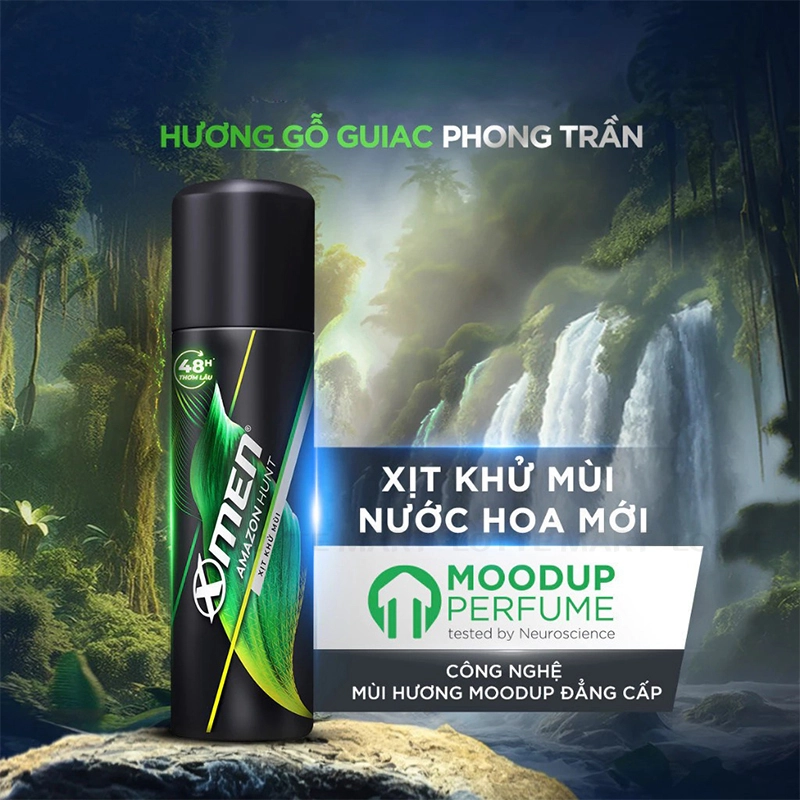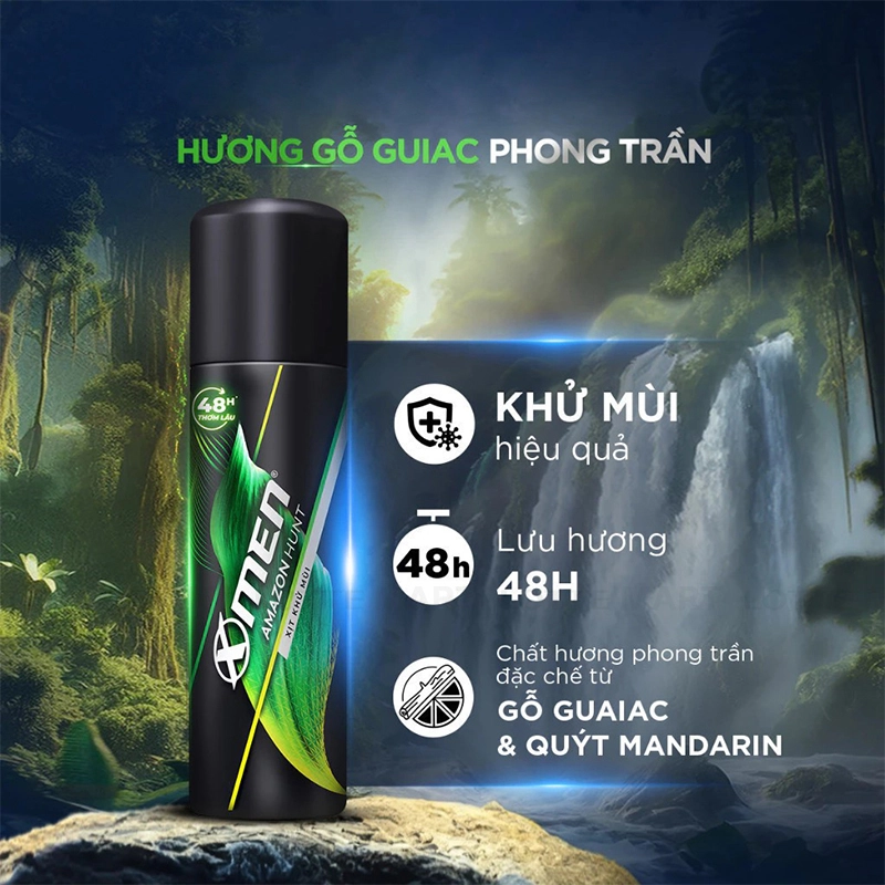 - Xịt Khử Mùi Nam Xmen Amazon Hunt với chất hương phong trần đặc chế từ gỗ Guaiac và Long Diên Hương cho mùi hương nam tính.