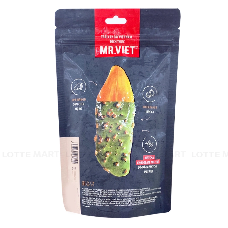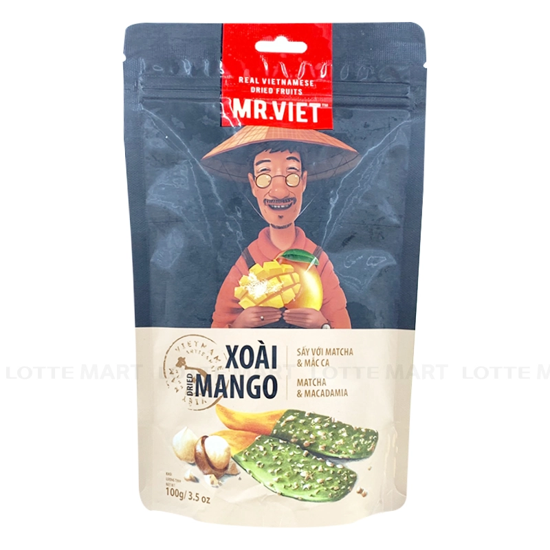 - Xoài Sấy Matcha MR.VIET Gói 100G được làm từ xoài sấy chín mọng dẻo ngọt, bơ ca cao, bột trà xanh và hạt mắc ca tạo nên một món ăn vặt mới lạ có vị ngọt tự nhiên pha chút chua chua của xoài hòa quyện cùng hương thơm đặc trưng của trà xanh và độ béo bùi của mắc ca chắc chắn sẽ cho bạn một dư vị khó quên.