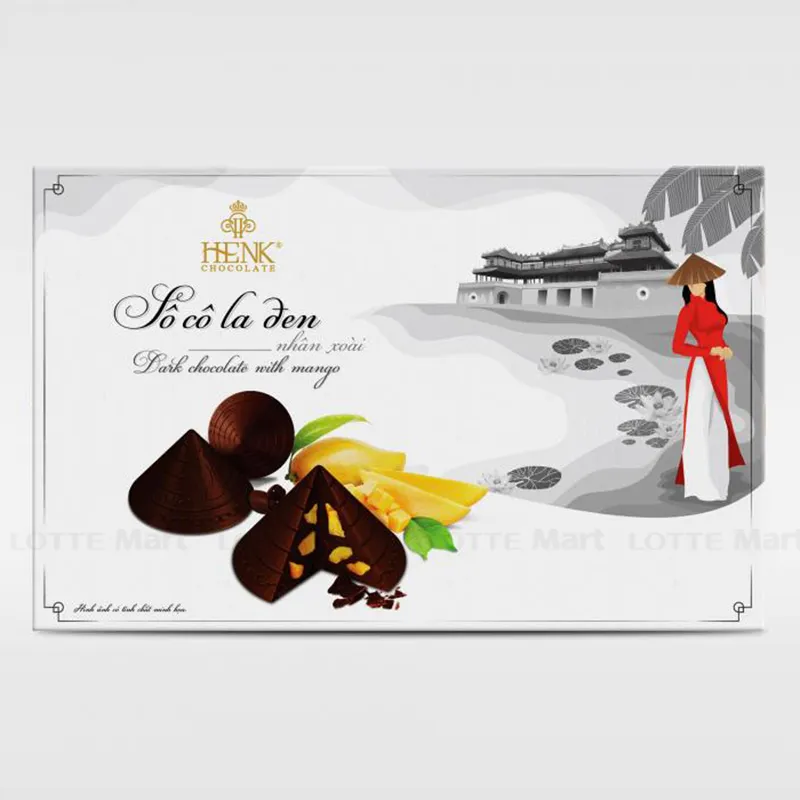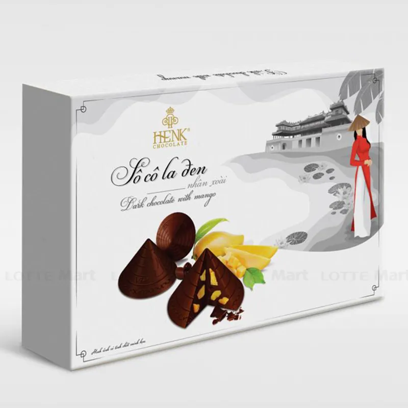 Xoài Nhúng Socola Đen Henk là sự kết hợp tinh tế giữa vị đắng nhẹ, đậm đà của lớp socola đen bao bọc bên ngoài cùng phần xoài thơm ngon.
