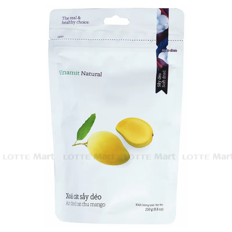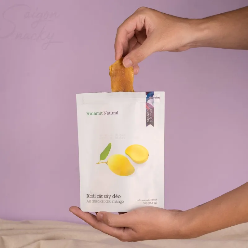Xoài sấy dẻo Vinamit được đóng gói thuận tiện cho việc đem đi xa, dùng trong những buổi cắm trại, picnic. Sản phẩm có thể dùng thay thế các loại mứt trong dịp Tết.