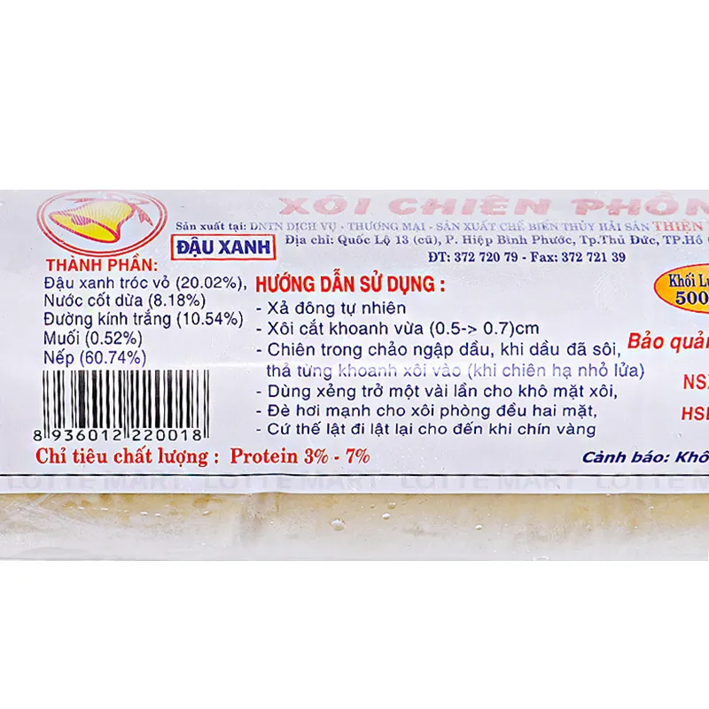 Thành phần: Nếp, đậu xanh (20%), đường, muối, nước cốt dừa