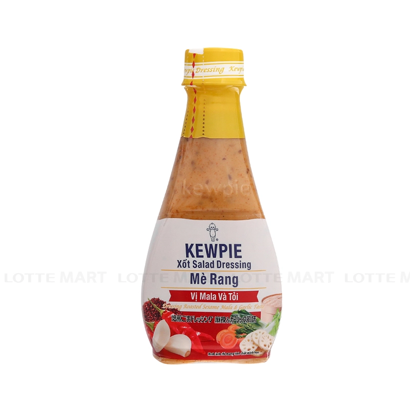 - Xốt Mè Rang Kewpie Vị Mala Và Tỏi Chai 210ml có hương vị đặc trưng đến từ sự kết hợp hài hòa giữa vị ngon bùi của mè rang, vị đậm đà của nước tương, vị thanh chua của giấm hòa cùng vị cay tê tê phù hợp làm xốt chấm cho các món hấp và lẩu.
