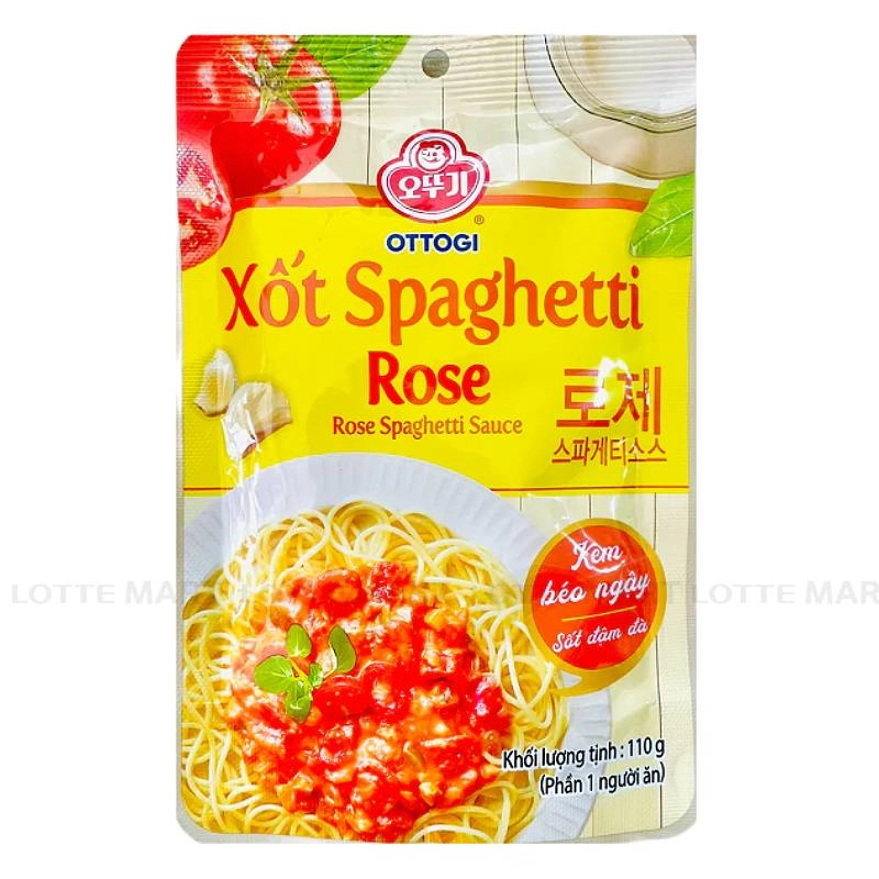 - Xốt Spaghetti Ottogi Vị Rose là sản phẩm đến từ Hàn Quốc với sự kết hợp giữa cà chua chín và bột kem sữa beo béo, tạo nên một mùi vị rất riêng, lạ miệng.