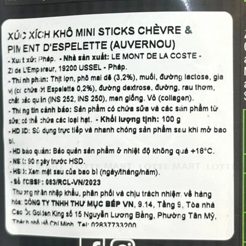 Xúc Xích Khô Mini Sticks Chevre & Piment D'Espelette Auvernou 100g
