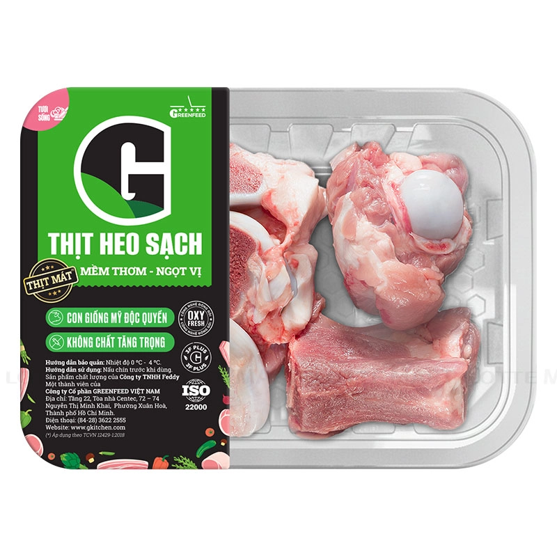 Xương Ống Heo G Kitchen được đóng khay nhựa chuyên dụng với màng bọc trong suốt, giúp dễ dàng quan sát và kiểm tra chất lượng thịt bên trong.